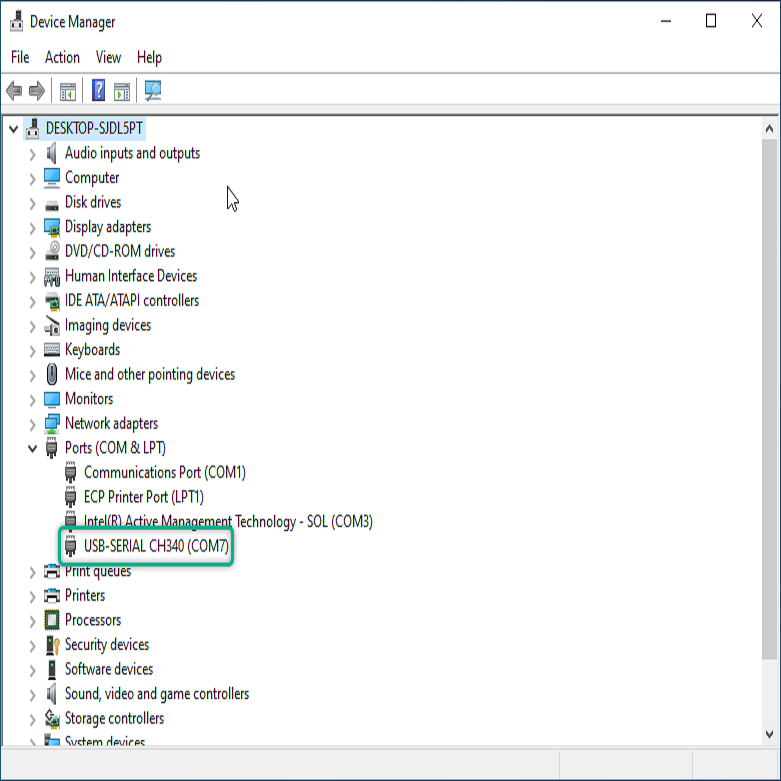 • Tìm kiếm phần Ports (COM & LPT). Nếu driver đã được cài đặt đúng, bạn sẽ thấy tên và số cổng của bo mạch (ví dụ: COM7).